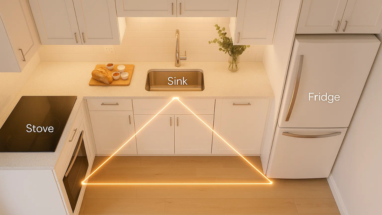 Start by sketching your current layout and measuring distances between your sink, fridge, and stove. Does it feel cramped or too spread out? Experiment with small changes or consult a designer to bring the kitchen golden triangle to life.